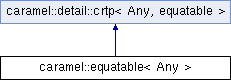 Public Member Functions inherited from caramel::detail::crtp< Any, equatable > | |