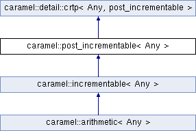 Public Member Functions inherited from caramel::detail::crtp< Any, post_incrementable > | |