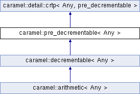 Public Member Functions inherited from caramel::detail::crtp< Any, pre_decrementable > | |