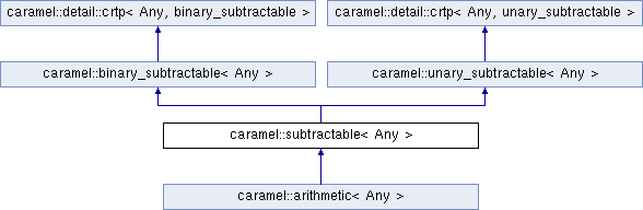 Public Member Functions inherited from caramel::detail::crtp< Any, binary_subtractable > | |